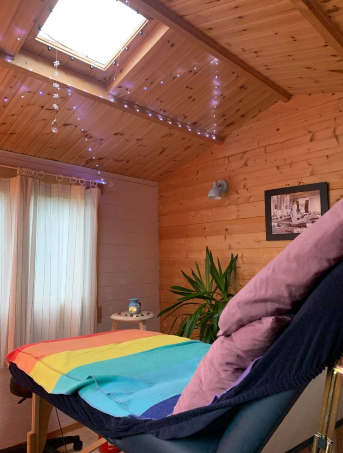 I am based in Stoke Gabriel and work from my beautiful, wooden purpose-built log cabin in my garden – the ideal space to lie down, unwind, and unplug. It is a deeply relaxing space, with a heat pad, hot towels, an essential oil diffuser, and candles. There is plenty of free parking on my drive.